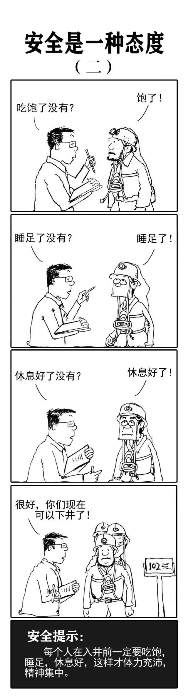 每個人在入井前,一定要睡足、吃飽、精神好,保持體能強健和精力充沛。入井前絕對不許喝酒,否則由于神志不清、精力不集中,在井下行走、乘車、工作時,就容易出差錯,甚至釀成事故。