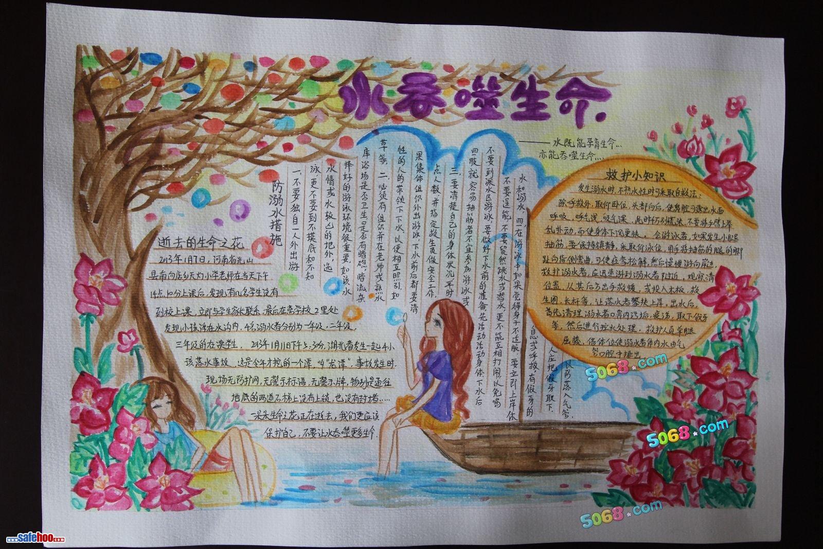 手抄報:珍惜生命預防溺水