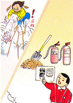千萬不能用水撲救電器火災,以免發生觸電事故 |