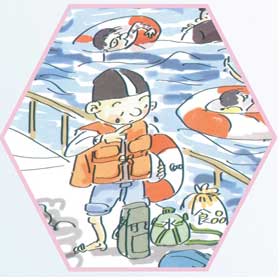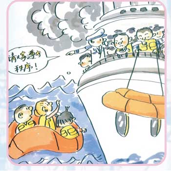 | 遇到事故需要棄船避難時,要對浮舟進行檢查,清點好帶到浮舟上的備用品。 |