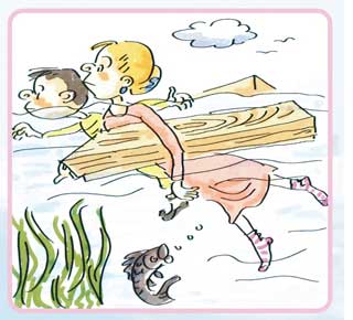 | 如有可能,應(yīng)脫掉鞋子和厚重衣服,尋找漂浮物并牢牢抓住,慢慢向岸邊滑動。 |