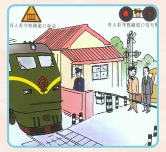 | 行人和車輛,通過有人看守的鐵路道口時,應按照交通信號和管理人員的指揮通行。 | |