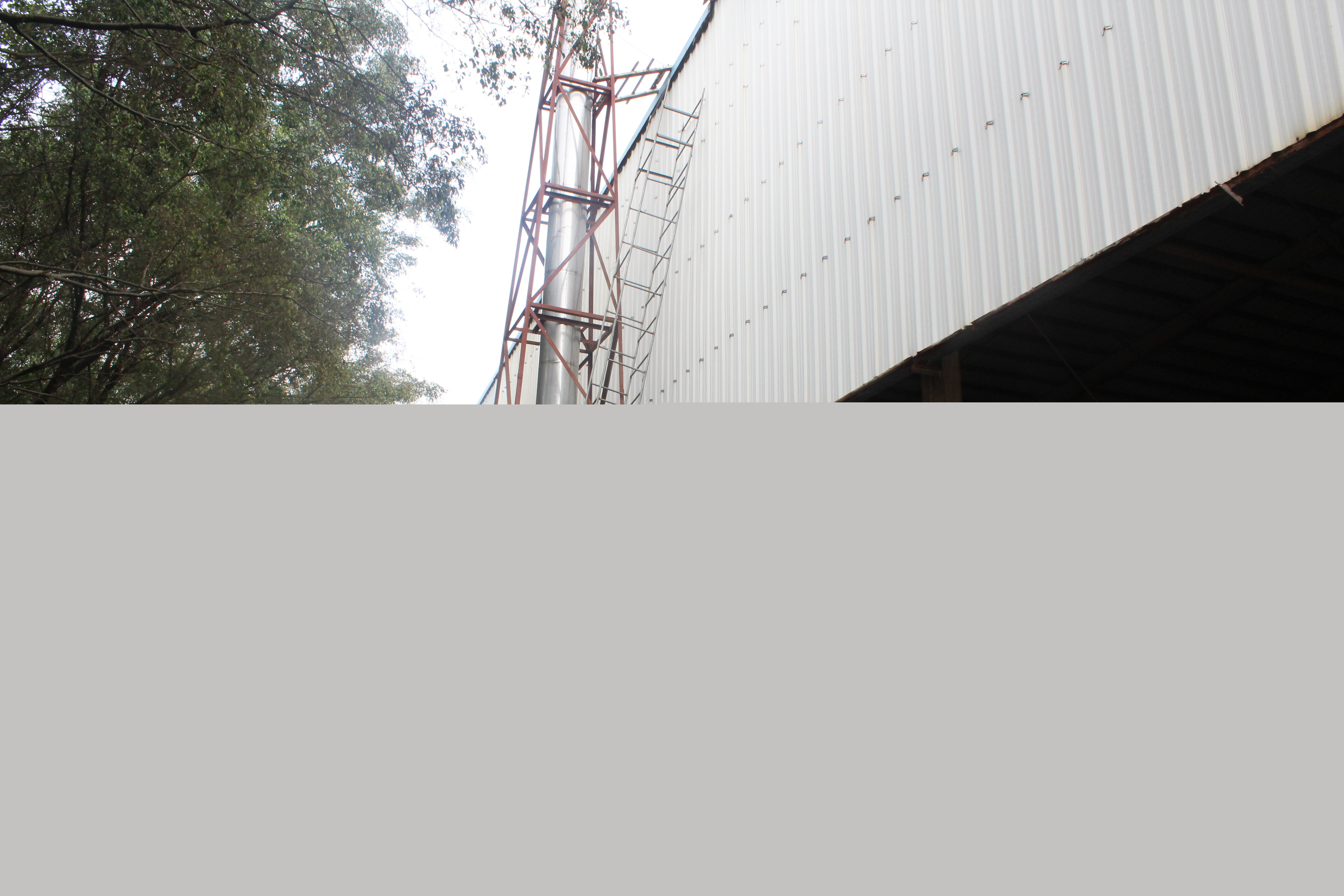 事故發生地點位于陽西縣程村鎮325國道邊廣墾橡膠廠生產車間濃縮膠乳池旁邊。車間為東西方向單跨起脊鋼架結構(中間高兩邊低),東西長114米,南北寬54米,棚頂用白色PVC(聚氯乙烯)塑料瓦鋪設,棚頂中心最高點約11米,兩邊最低點約8米。墜落處距離地面約11米。車間前面入口中心偏南位置有一個長約0.7米、寬約0.8米的洞口。車間后面有一個用水管焊接而成的簡易梯子,并固定在旁邊的管道至棚頂下部。
