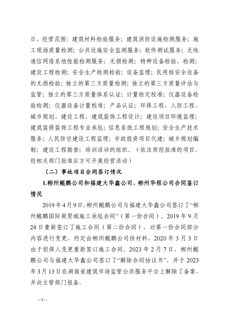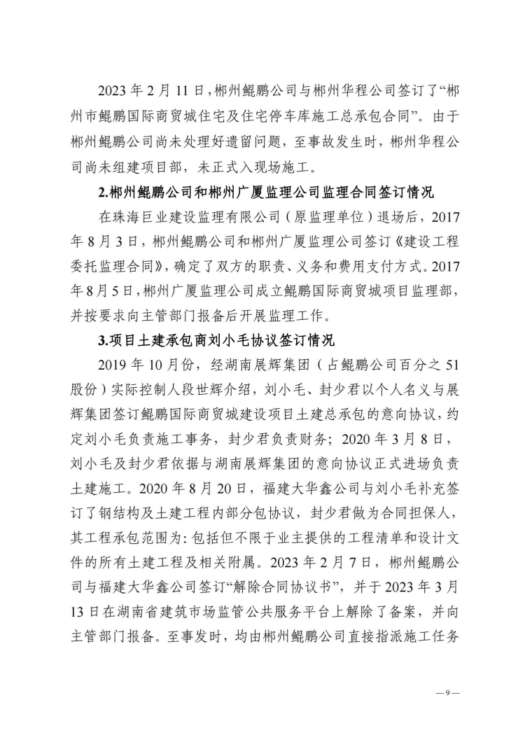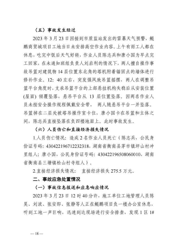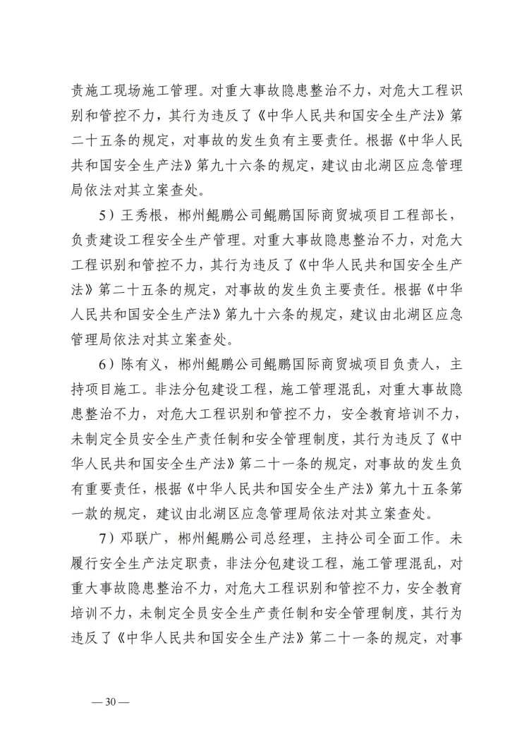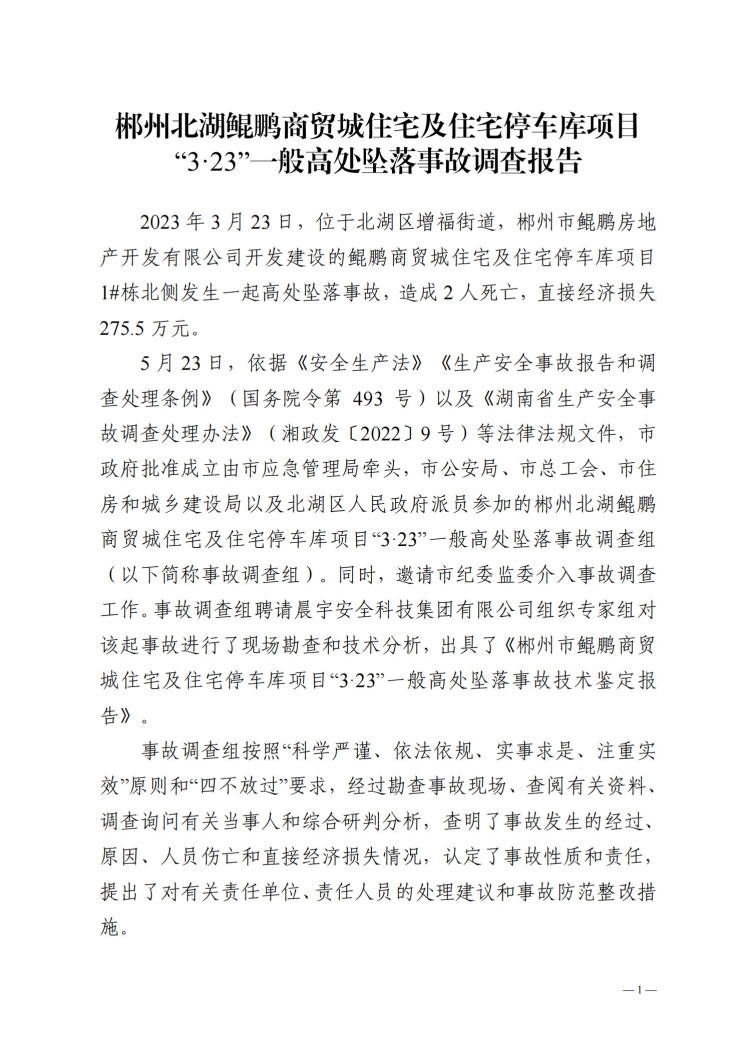 郴州北湖鯤鵬商貿城“3.23”事故調查報告