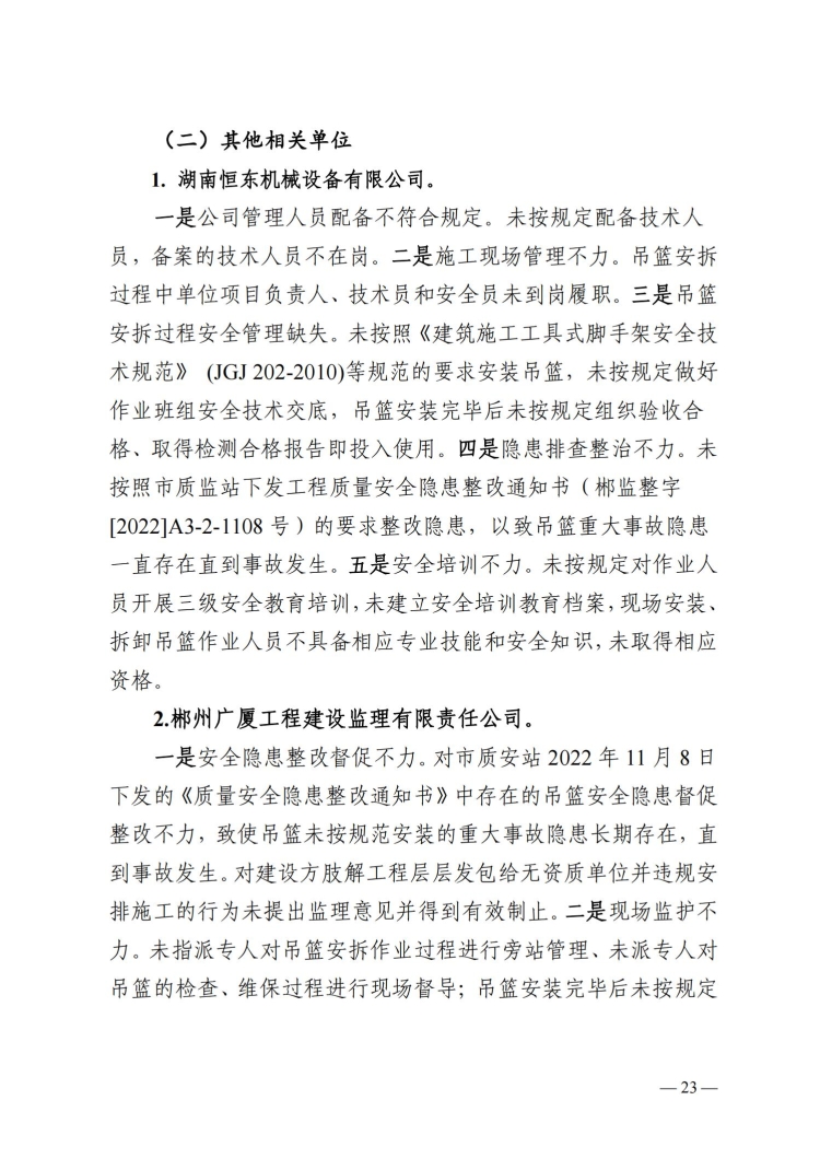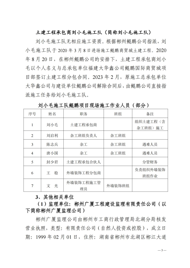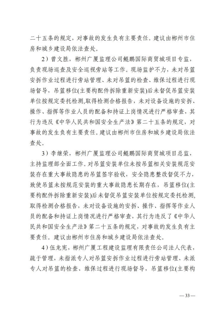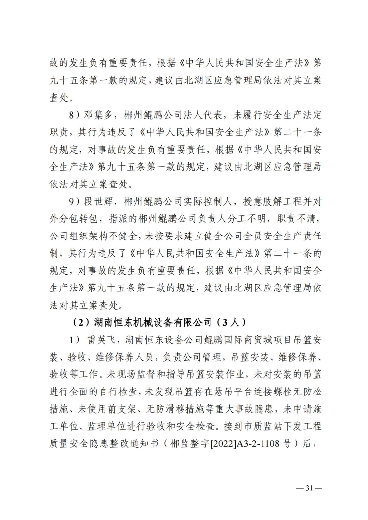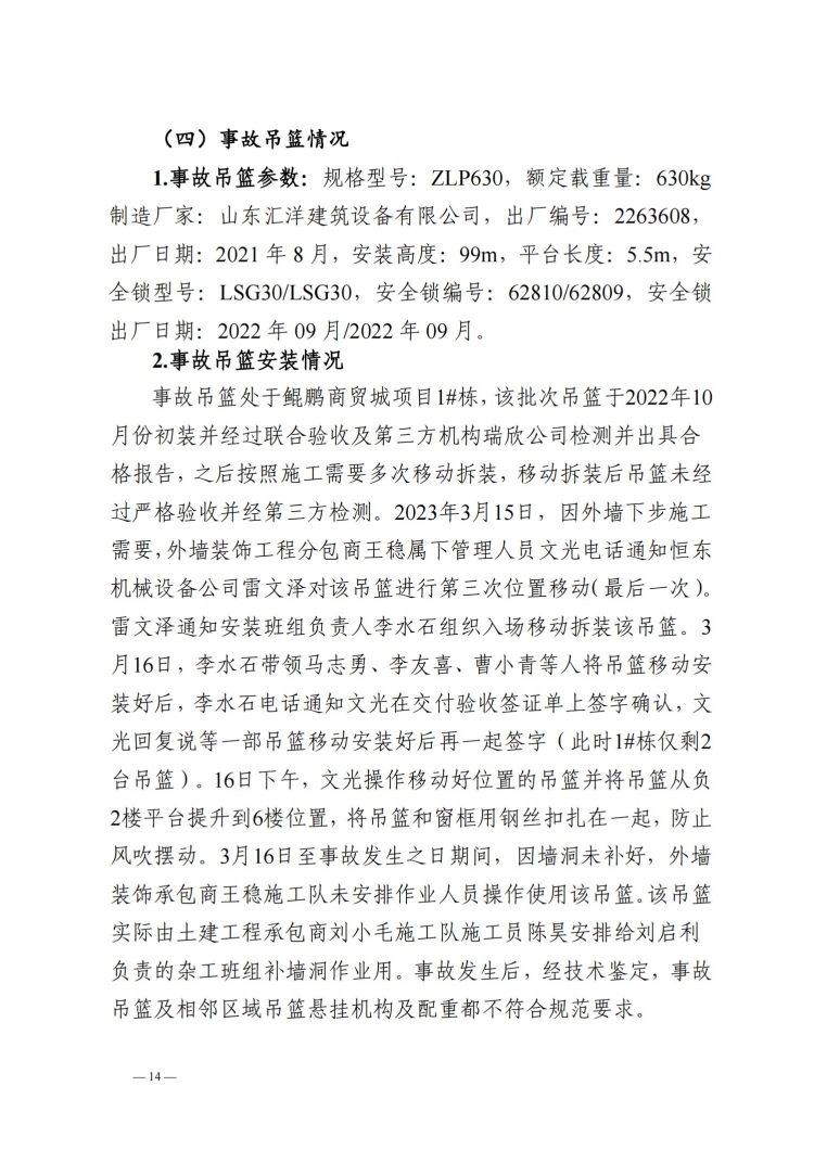 郴州北湖鯤鵬商貿城“3.23”事故調查報告