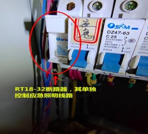 3.現場測電過程。(1)在事發后的現場狀態下,配電房里的配線柜總閘處于斷開狀態,測量事發房間的配電箱、吊頂鋼質龍骨骨架及吊頂板面、剪斷的斷線線頭等,均處于無電狀態。(2)還原事發時現場通電現實狀態,把總開關閉合。用感應驗電筆測量事發點的吊頂鋼質龍骨骨架及吊頂板面,均存在感應電。測量事發房間配電箱的五根主線,未感應有電。(3)在配電房總開關閉合,把型號為RT18-32的熔斷器斷開的情況下,測量事發點的吊頂鋼質龍骨骨架及吊頂板面,未感應有電。(4)在斷開總開關后,將事故區域的消防應急照明燈(連同其逆變器、電池)拆除后,再將總開關、RT18-32的熔斷器閉合的狀態下,用感應驗電筆測量事發點的吊頂鋼質龍骨骨架及吊頂板面,未感應有電。