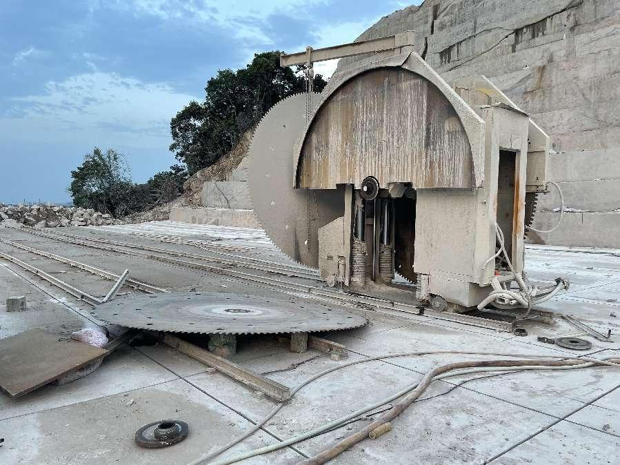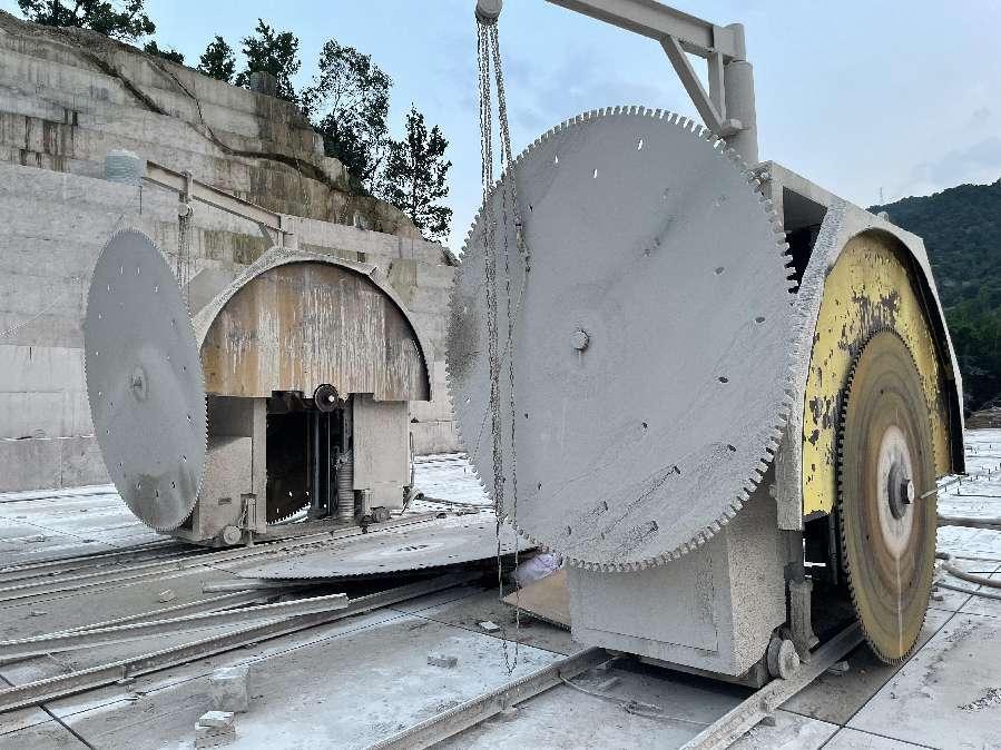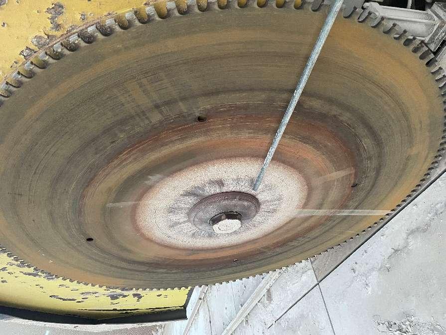 時15分許,需要對圓盤鋸鋸片(圖二)進行更換以后再下班休息。在停止切割作業,對礦山采石機其中一側的鋸片拆卸后,三人未采取任何安全、固定措施將鋸片斜靠在礦山采石機上。