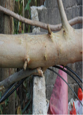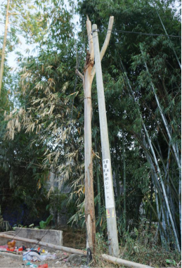 圖3 “一九號桿”和樹干 ?????????????????????????????????????? 圖4 枝干壓著一組線纜