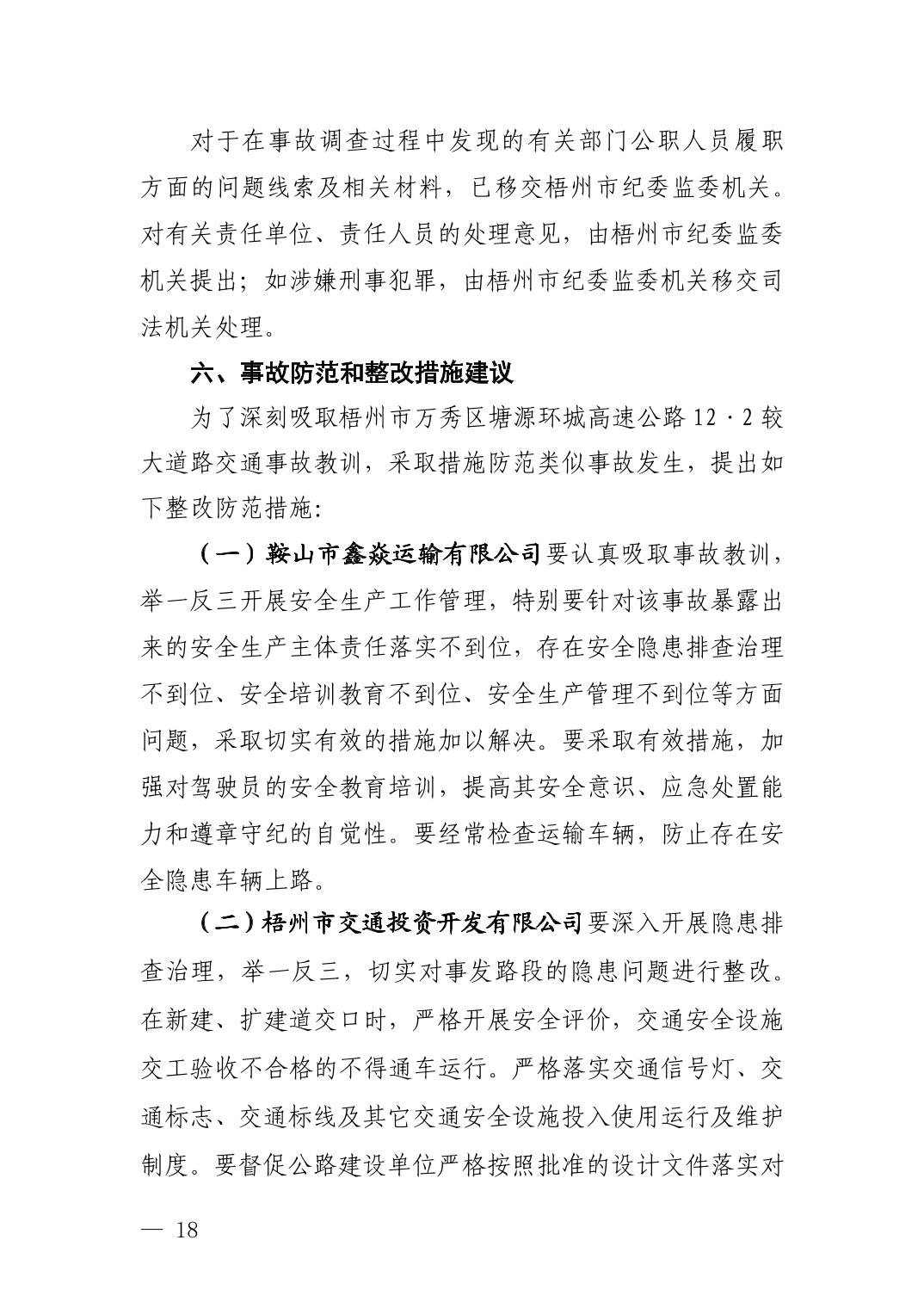 梧州市萬秀區塘源環城高速公路12·2較大道路交通事故調查報告