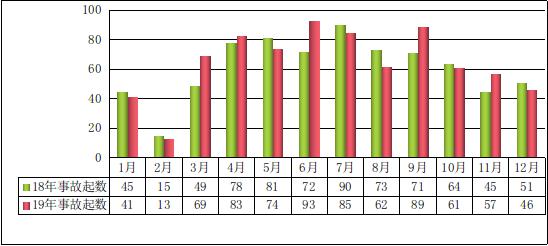 圖1 2019年全國房屋市政工程生產安全事故起數情況