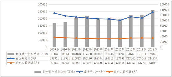 圖3 2009年-2018年全國交通事故發(fā)生情況匯總分析