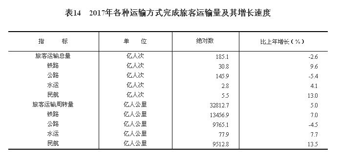 全年旅客運輸總量185億人次,比上年下降2.6%。旅客運輸周轉量32813億人公里,增長5.0%。
