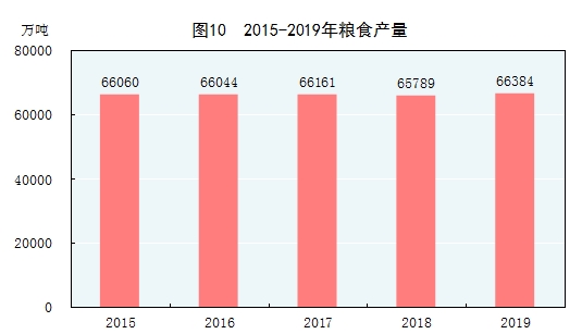 全年糧食產(chǎn)量66384萬噸,比上年增加594萬噸,增產(chǎn)0.9%。其中,夏糧產(chǎn)量14160萬噸,增產(chǎn)2.0%;早稻產(chǎn)量2627萬噸,減產(chǎn)8.1%;秋糧產(chǎn)量49597萬噸,增產(chǎn)1.1%。全年谷物產(chǎn)量61368萬噸,比上年增產(chǎn)0.6%。其中,稻谷產(chǎn)量20961萬噸,減產(chǎn)1.2%;小麥產(chǎn)量13359萬噸,增產(chǎn)1.6%;玉米產(chǎn)量26077萬噸,增產(chǎn)1.4%。