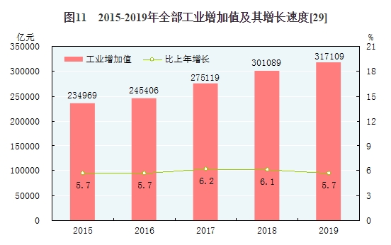 [30]2018年部分產(chǎn)品產(chǎn)量數(shù)據(jù)根據(jù)第四次全國經(jīng)濟普查結果進行了修訂,2019年產(chǎn)量增速按可比口徑計算。