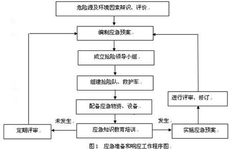 根據(jù)本工程的特點及施工工藝的實際情況,認真的組織了對危險源和環(huán)境因素的識別和評價,特制定本項目發(fā)生緊急情況或事故的應(yīng)急措施,開展應(yīng)急知識教育和應(yīng)急演練,提高現(xiàn)場操作人員應(yīng)急能力,減少突發(fā)事件造成的損害和不良環(huán)境影響。