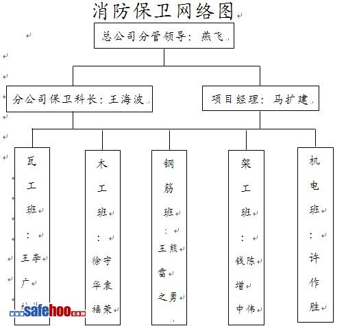 ??????? 單位負責人為第一責任人,同時成立以項目經理為首的消防保衛領導小組,指導工地消防保衛的實施工作。同時項目與班組簽定防火合同。