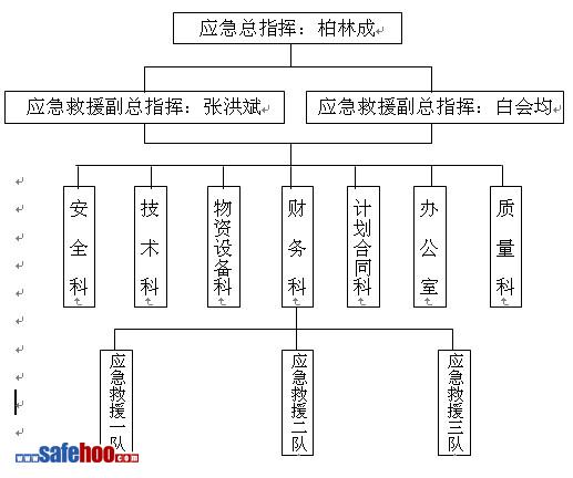 項(xiàng)目副經(jīng)理:負(fù)責(zé)現(xiàn)場(chǎng)組織、指揮應(yīng)急救援工作,為救援現(xiàn)場(chǎng)人力、物力、財(cái)力資源的總調(diào)度;組織應(yīng)急救援技術(shù)方案的具體實(shí)施。