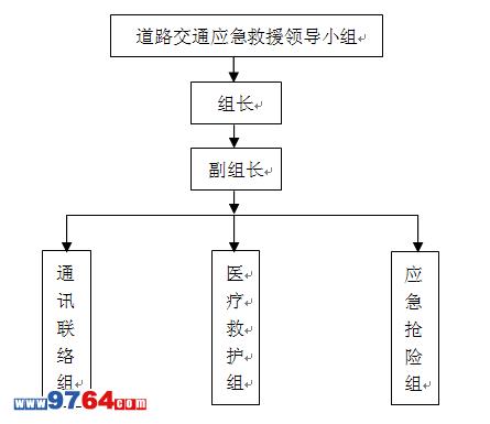 ??????? 成立以公司經理為組長、安全技術科長為副組長、各專職安全員為成員的道路交通應急救援領導小組,公司所屬兼職安全員為道路交通應急搶救隊成員,應急搶救隊在領導小組的統一領導和指揮下投入到道路交通應急救援和搶險中。