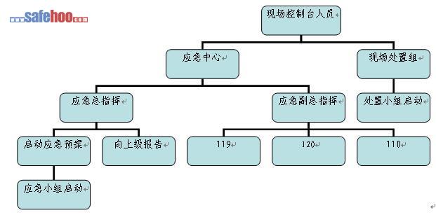 5.3.1發生一般事故以上的,現場人員通過手機向混裝作業負責人報告,同時向應急中心報警,應急中心向公司應急總指揮、副總指揮報告,總指揮接到報告后立即啟動綜合應急預案;若勢態無法控制或有擴大趨勢時,現場負責人立即啟動外部救援;