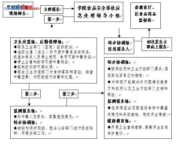 食品安全責任體系是建立在層層負責的基礎之上:總務處、后勤服務中心負責落實學院安全委員會關于預防食品安全事故的各項措施和要求,擔當預防食品安全事故全面管理工作,總務處、后勤服務中心部門一把手在這個層面上是第一責任人;后勤服務中心餐飲部負責搞好預防食品安全事故的日常管理工作,對安全飲食進行全面監督檢查,餐飲部主任在這個層面上是第一責任人,具體管理人員負有崗位責任;班組是食品加工的操作者,承擔著預防食品安全事故的重要責任,班組在原材料加工操作這個層面上是第一責任人。