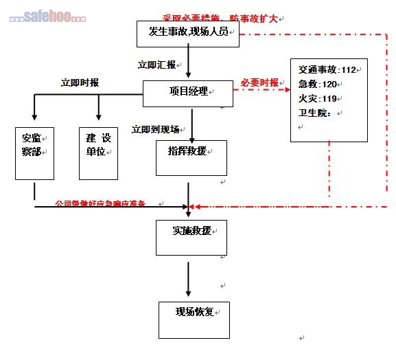 (2)、項目經(jīng)理及應(yīng)急人員對事故應(yīng)及時進(jìn)行處理,并及時向公司安全設(shè)備科報告。