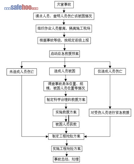 ??????? 11、 隧道災害事故處理和救援應按下圖所示的工作程序進行。