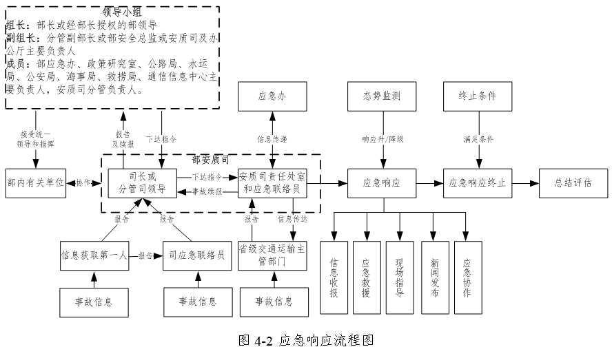 (3)部安質司負責將應急響應信息通知部內相關司局和事發地省級交通運輸主管部門,各級公路水運工程生產安全事故應急響應同步啟動。