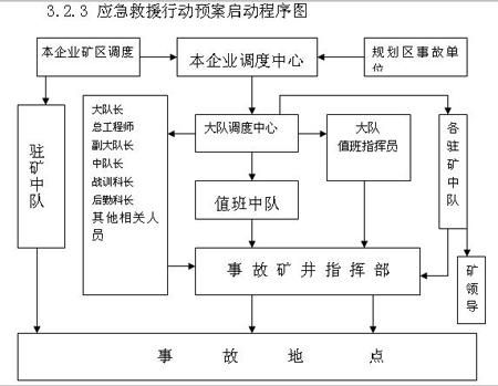 ??? 3.2.1 本企業爆炸事故:直屬中隊出動后,大隊調度員按順序電話通知總工程師、直屬中隊長、戰訓副大隊長、后勤副大隊長、戰訓科長、后勤科長、大隊總支書記及有關人員到隊待命,準備支援或從事其他事故的搶險救災工作。大隊調度員根據現場反饋的信息和指令,通知非事故礦井駐礦中隊做好出動準備。