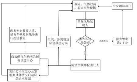 原則上集團公司負責Ⅰ級、Ⅱ級類別的燃氣車輛泄漏事故;各事業部及所屬單位負責Ⅲ級、Ⅳ級類別的燃氣車輛泄漏事故,集團公司協助處理Ⅲ級類別的燃氣車輛泄漏事故。