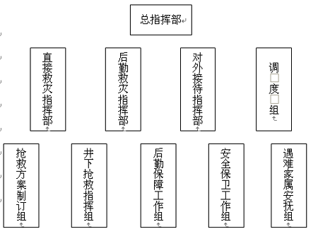 ??? 其主要任務(wù)是:制定搶險(xiǎn)救災(zāi)方案,下達(dá)具體救災(zāi)指令,執(zhí)行、落實(shí)救災(zāi)方案。根據(jù)救災(zāi)指揮下設(shè)兩個(gè)組。一個(gè)是搶救方案制定組,一個(gè)是井下?lián)尵戎笓]組。