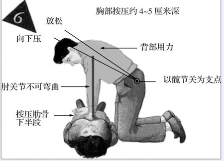 ??? 每次下壓時,應(yīng)將胸骨壓下4~5厘米,放松時,手不施壓力,但不可移動手的位置。