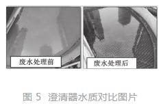 使用高效絮凝劑處理后的澄清器水質對比圖片如圖 5 所示。