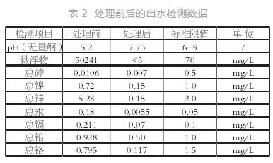 將使用高效絮凝劑處理前后的出水取樣后,送到專業機構進行檢測,檢測結果如表 2 所示。