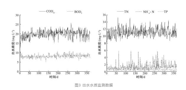 該污水處理廠2017年每日出水水質監測數據如圖3所示。