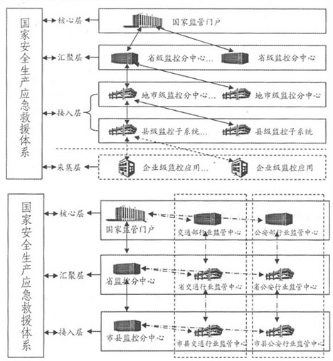 以上三級均為政府監控層,各級政府的交通、公安部門將建設相應的行業監管分中心,分別與各級的安全生產應急救援中心相結合,組成本行政區域內完整的應急救援體系。