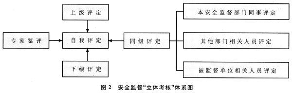 1) 安全監(jiān)督考核的實(shí)施應(yīng)遵循如下步驟:建立一個(gè)科學(xué)的考核機(jī)構(gòu),多方收集信息;進(jìn)行“立體考核”,上級(jí)評(píng)定安全監(jiān)督“立體考核”體系(見(jiàn)圖2)。