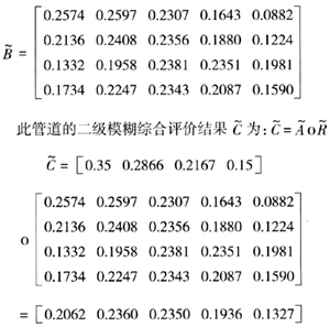 ??? 同理,根據模糊綜合評價法可以求出管道失效后果評價結果: