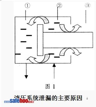 在分析泄漏產生的原因之前,首先要知道什么是泄漏,還要了解液壓系統泄漏的種類。泄漏是指在液壓系統正常工作的情況下,從液壓元件的密封間隙漏出少量油液的現象。液壓系統泄漏主要有外泄漏和內泄漏兩種:油液從液壓元件的高壓腔流向低壓腔的現象稱為內泄漏;油液從系統內部流到系統外部的泄漏稱為外泄漏。如圖1所示:油液從②流向①,稱為內泄漏,油液從②流向③,稱為外泄漏。又如,SZ-100/80型注塑機壓系統的泄漏主要有兩種:固定密封處泄漏和運動密封處泄漏。固定密封處泄漏的部位主要發生在缸底、各管接頭的連接處等,稱為外泄現象;運動密封處泄漏主要發生在油缸活塞桿部位、多路閥閥桿等部位,稱為內泄現象。