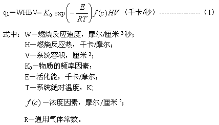 ??? 封閉系統內,氣體燃料與氧化劑的混合物(可燃混合物)的產熱率q1的計算式如下:
