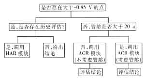 國際上普遍把-0.85V作為判斷陰極保護系統(tǒng)是否正常工作的標準,因此在模型中把-0. 85V作為開始判斷的標準。如是存在大于0.85V的測量數(shù)據(jù),則認為管道局部存在欠保護狀態(tài),調(diào)用HAR(Historic Access Risk.歷史評估)模塊,對管道的歷史數(shù)據(jù)和防腐層進行進一步的分析和評估;如果不存在大于-0.85V的數(shù)據(jù),則再進一步判斷管道管齡是否大于20a,調(diào)用當前風險評估模塊ACR(Access Current Risk,風險評估)模塊,對管道管齡進行風險加權(quán),分析防腐層,從而得出相應(yīng)的評估結(jié)論。