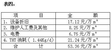 ??? 按天然氣輸送量80000m3/d 計(只考慮對民用氣)。加臭設備及附屬設施(按三臺套計)使用年限按12年計,致臭劑THT11.8萬元/t(含運費),加臭成本估算見表四。