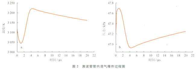 2)可燃混氣燃燒過程隨溫度、壓力的增加可以轉換為爆轟過程,爆轟產生過程是一個典型的激波傳播過程,當火焰傳播與激波導致燃燒過程重合時,便產生了爆轟。