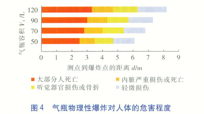 ②本文得出了常用規(guī)格的氣瓶發(fā)生物理性爆炸時(shí),對(duì)人體各種損傷程度的危害范圍(即不同程度損傷下測(cè)點(diǎn)到爆炸點(diǎn)的距離),以及人員活動(dòng)的安全區(qū)域,可以為事故的安全防范提供理論指導(dǎo)。