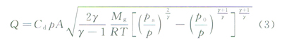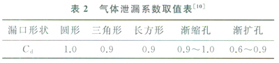 1)當p≤pc時,氣體為亞聲速流,亞聲速流泄漏流量公式為: