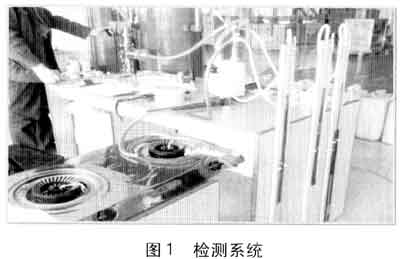 檢測工具及設備有:秒表、膠管、鐘罩1臺、U形管3只、雙眼灶具2臺、單眼灶具1臺。檢測系統見圖1。