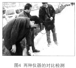 ????在聊城衛育路人行道上按照正常步行速度進行掃描檢測,通過采用便攜式甲烷激光遙感探測儀遙測,儀器發出報警聲,發現有一疑似漏點,液晶屏上有濃度值顯示,經過仔細檢測和逐步靠近定位,確定該處管道存在泄露的可能。