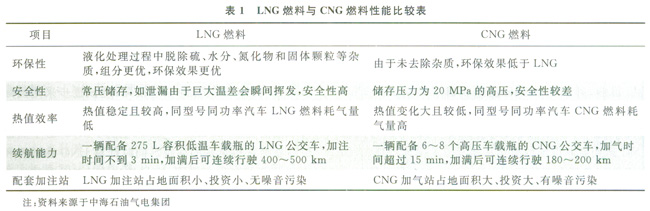 此外,LNG以常壓形態存在,燃點高(645℃)、爆炸下限值高、密度低,稍有泄漏很快在空氣中揮發擴散,安全性能較高。而且LNG燃料與CNG燃料相比優勢也比較突出(表1),可以說是車、船替代燃料的理想選擇。但是由于加注站建設土地獲取難度大、車船改造費用高昂、改裝后的檢驗和運行管理規范缺乏、水上或岸基加注站建設規范缺乏等問題,我國的LNG加注產業發展并沒有達到預期設想,發展加注產業較早的中海油目前每年加注量也僅僅超過20×104t。這與該公司LNG超過l000×104t/a的引進量相比,只能算是杯水車薪。