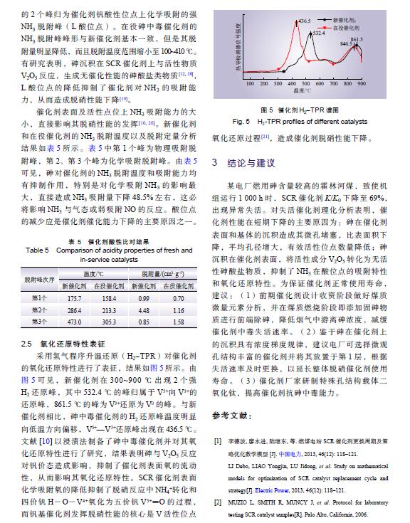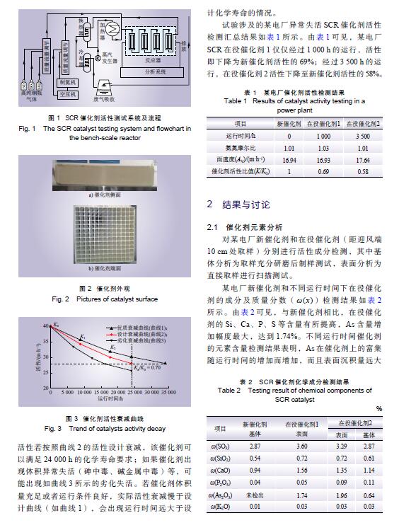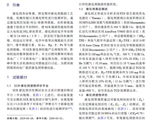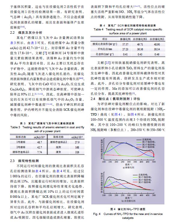 摘要: 某電廠燃用霍林河高砷煤種,以該電廠選擇性催化還原(SCR)脫硝蜂窩式催化劑為研究對(duì)象,對(duì)其在不同運(yùn)行時(shí)間下的脫硝活性進(jìn)行了中試檢測(cè)評(píng)價(jià),并采用X射線熒光光譜儀、氮?dú)馕矫摳絻x、壓汞儀、全自動(dòng)化學(xué)吸附儀等對(duì)其成分和微觀特性進(jìn)行了檢測(cè)分析。研究結(jié)果表明,砷在脫硝催化劑表面和微孔內(nèi)的沉積造成其微觀比表面積和孔結(jié)構(gòu)發(fā)生變化,降低了催化劑表面酸量和氧化還原特性,致使催化劑活性異常劣化,機(jī)組運(yùn)行1 000 h 時(shí)的催化劑脫硝活性僅為新催化劑脫硝活性的69%。為提高催化劑的使用壽命,提出了燃用高砷煤時(shí)減緩催化劑砷中毒的催化劑壽命管理建議。