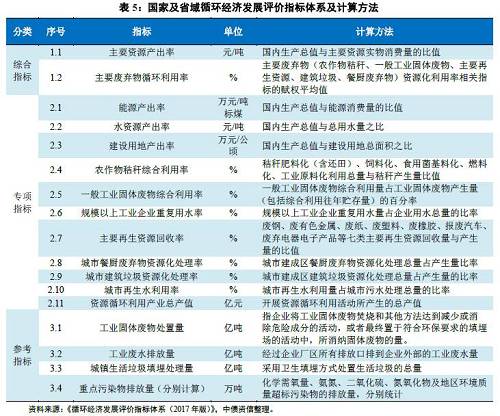 在專項指標的具體選擇上,資源產出效率指標主要從能源資源、水資源、建設用地等方面進行考察;資源循環利用(綜合利用)指標的選擇,兼顧了農業、工業、城市生產生活等;資源循環產業指標,則主要從相應產業規模方面進行考察,包括資源循環利用產業總產值指標。