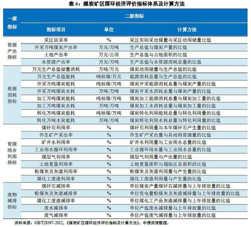 2、煤炭礦區循環經濟評價指標